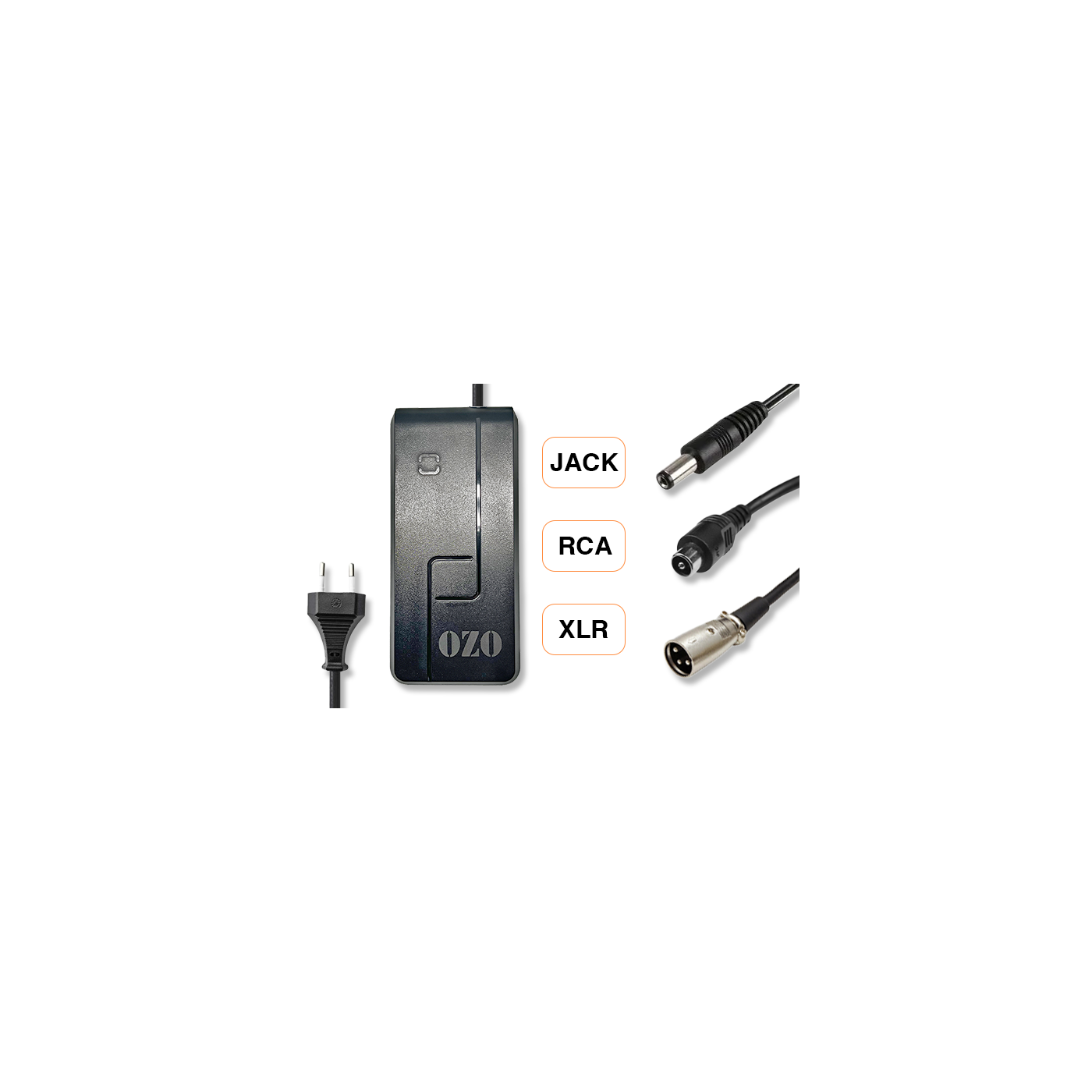 We offer 3 different types of charging connectors: RCA, XLR or Jack DC 2.1mm (2.1x5.5x12mm)