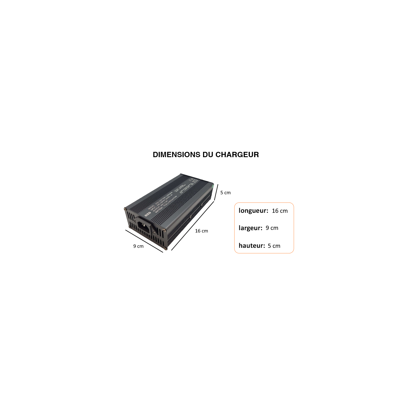 The 48V 5A charger allows you to recharge a 48V 14Ah 670Wh Lithium battery in 3 hours.