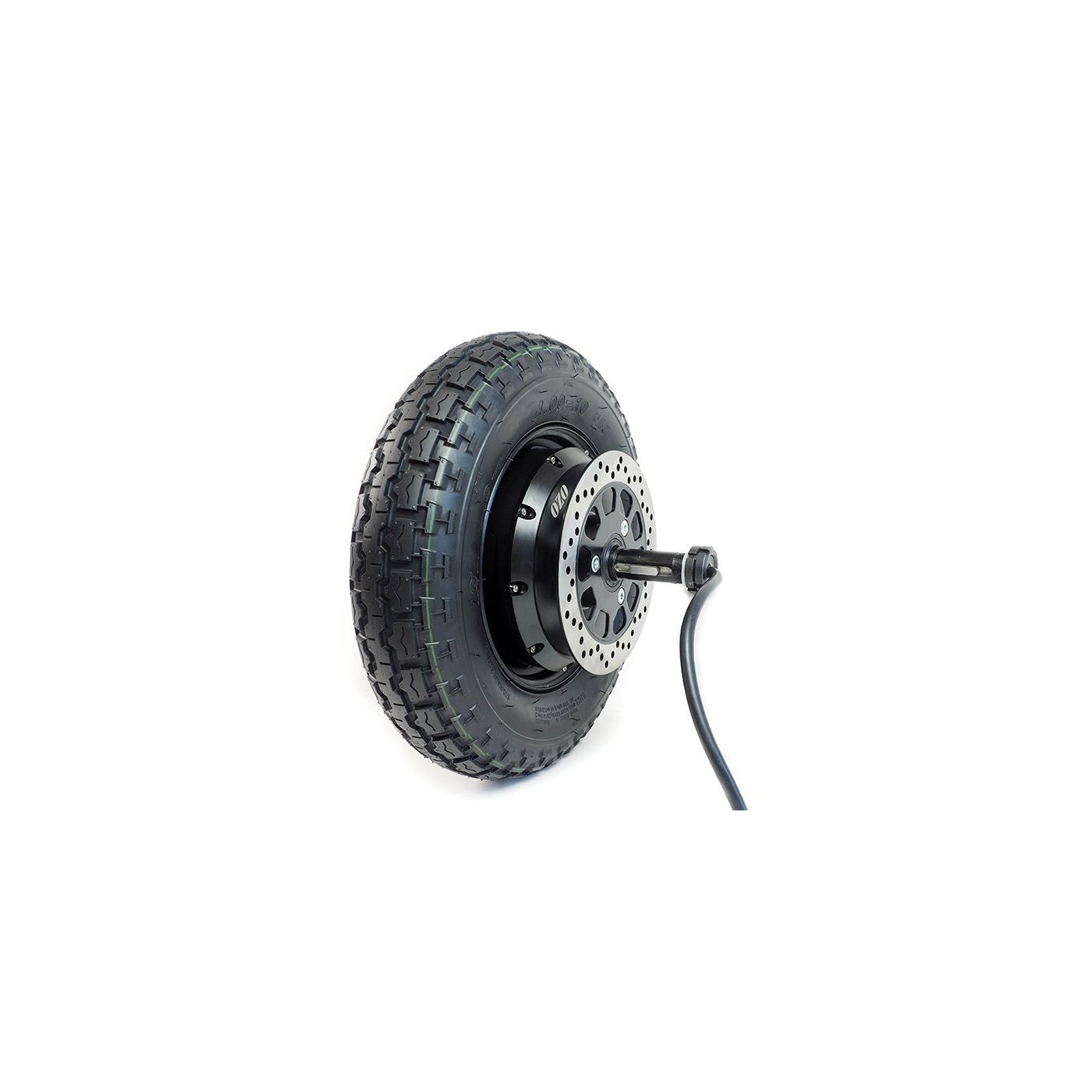 Please note that you can install every tyre of 10" / 4.00 - 4.80. To drive the motor we advise you our KELLY 70A Controller and a thumb throttle to control the motor power by yourself. You can drive the motor in forward direction and in reversing speed. For the battery, we propose you our Lithium 24V,36V and 48V batteries, you can also use lead battery instead of Lithium to supply your system. The lead battery disadvantage is the weight. Because its 5 times superior to a Lithium battery.