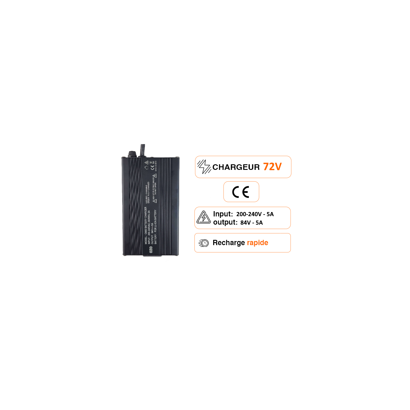 Waterproof 72V 25A IP66 charger for Lithium LiMn or LiFePO4 batteries for electric motorcycles or boats.