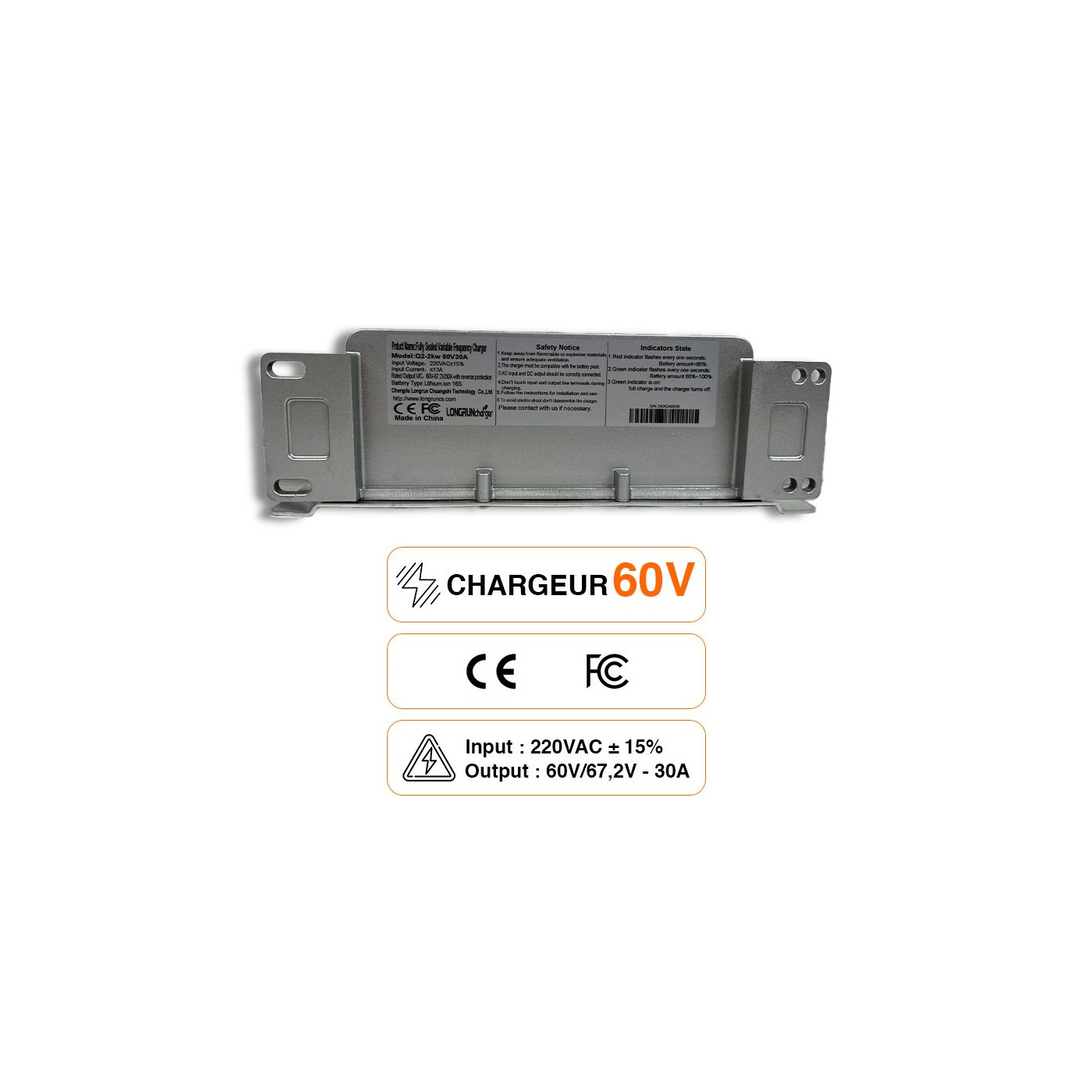 60V 30A Waterproof IP66 Charger for Lithium LiMn or LiFePO4 batteries for electric motorcycles or boats.