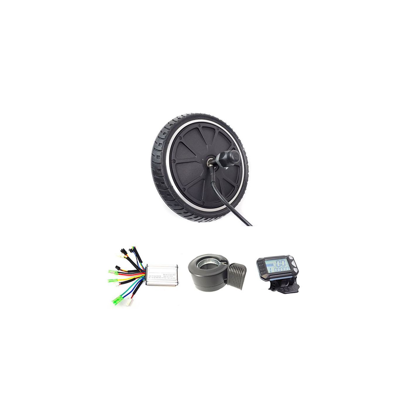 The 200mm (8-inch) electric hub motor kit is the ideal solution for adding electric assistance to an urban scooter at an affordable cost or for electrifying a rolling base (total weight < 150kg).