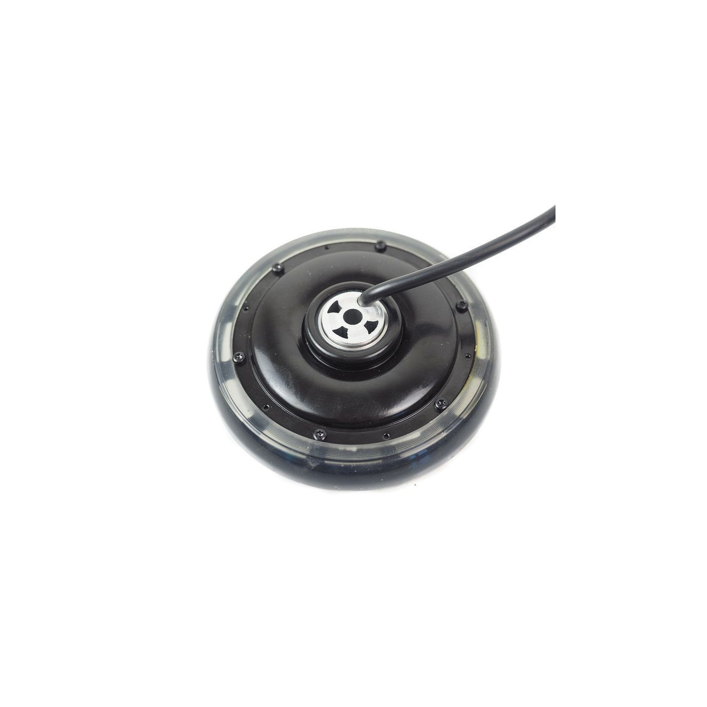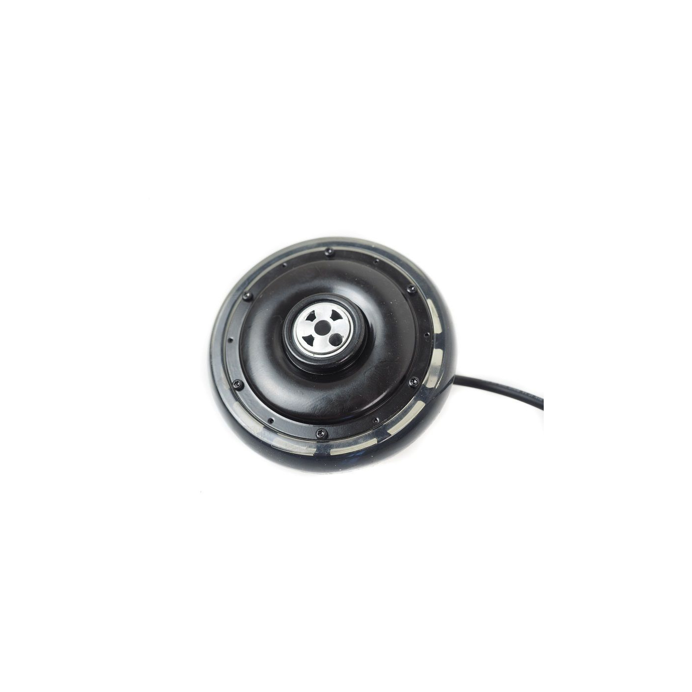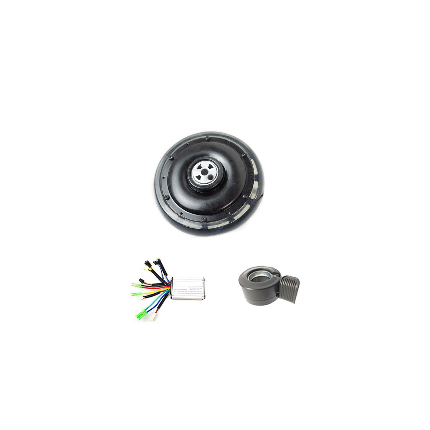 250W brushless electric hub motor kit, 125mm in diameter, supplied without battery. Perfect for electrifying a scooter, logistics trolley, picking cart, rolling table, or any other mobile base supporting a 100kg load.