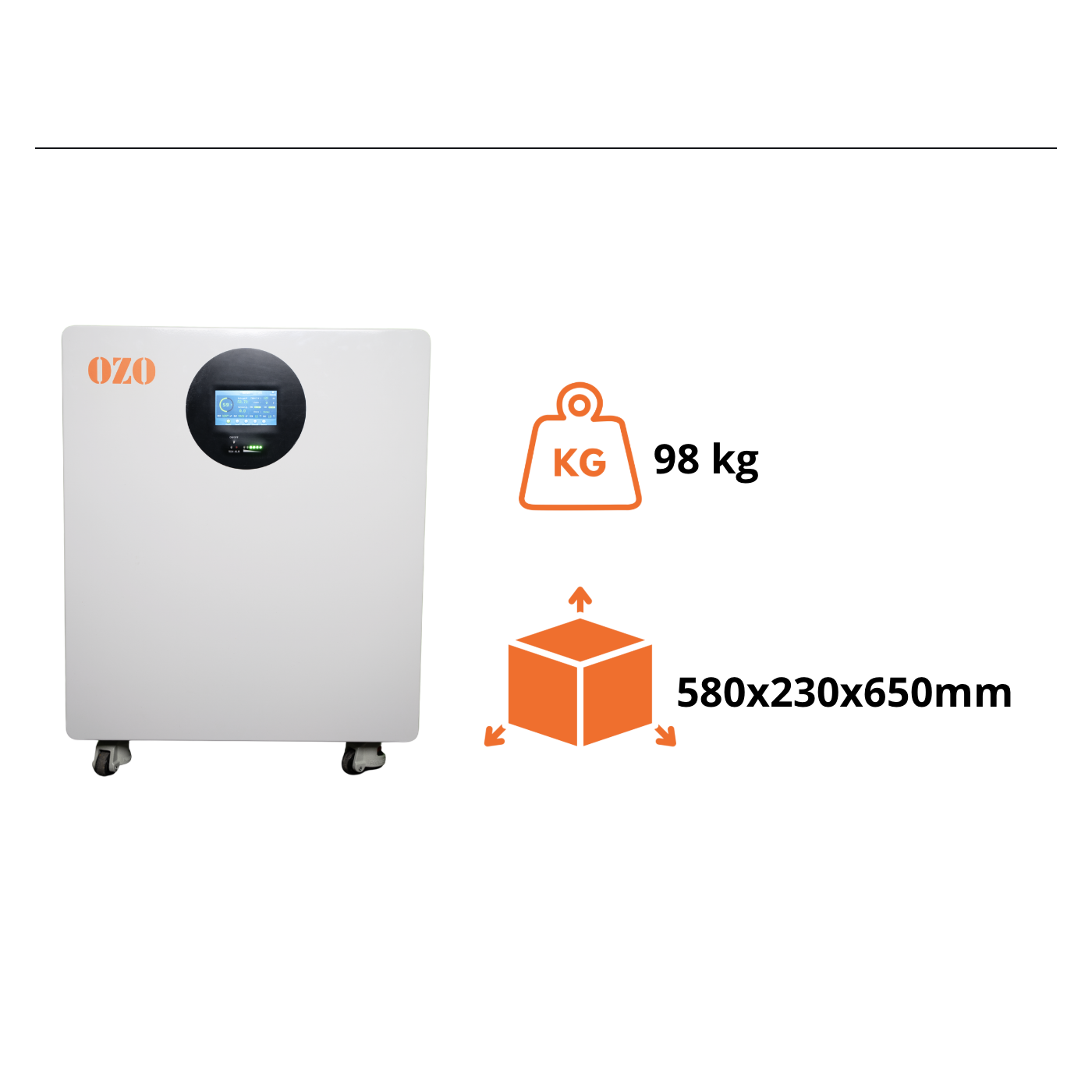 Optimize the energy self-sufficiency of your home with the OZO wheel-Mounted Solar Battery, an intelligent energy storage solution designed to meet modern energy requirements. This 48V, 5kWh Lithium LiFePO4 battery offers a generous capacity, perfect for efficiently powering your home with electricity.