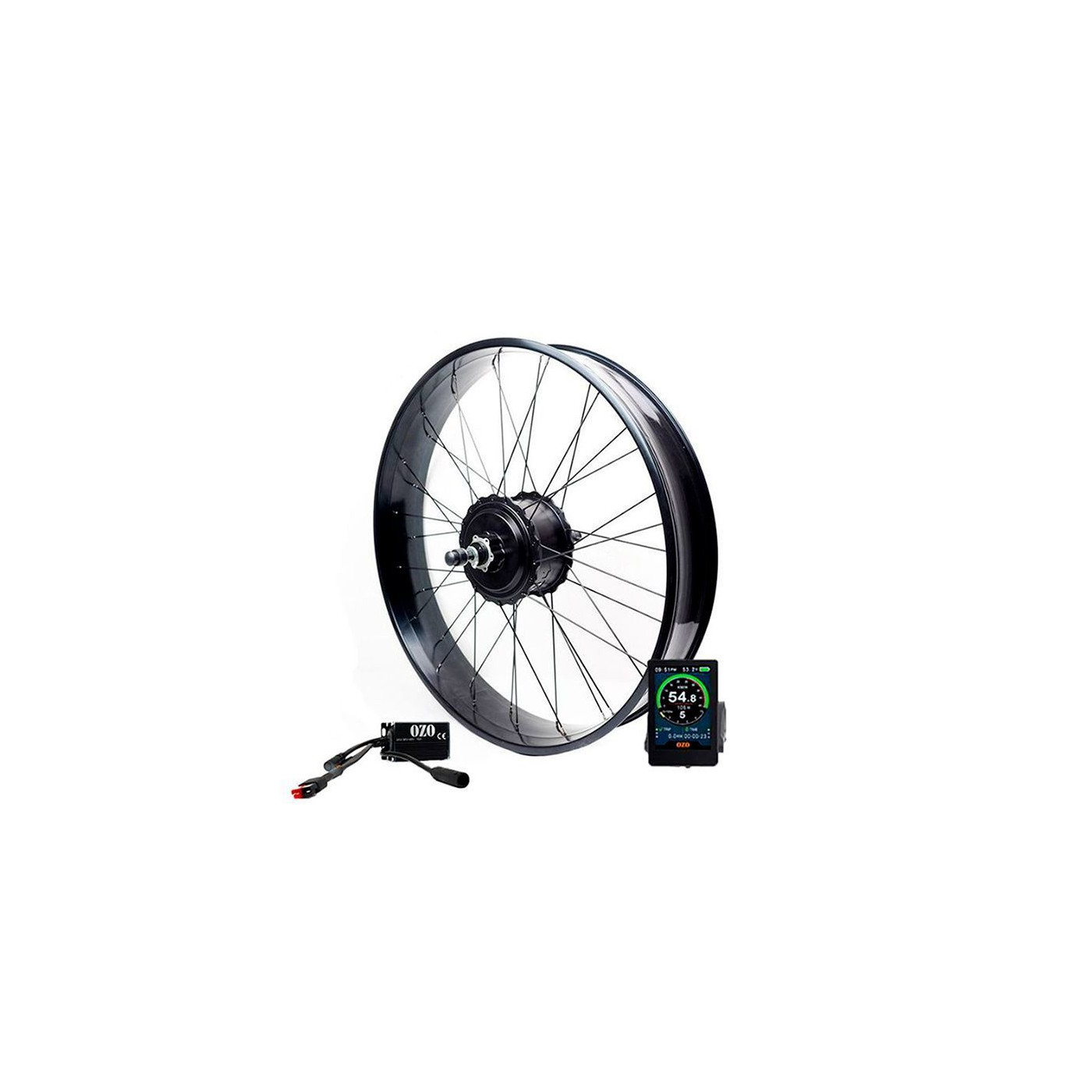 Compatible with all Fat Bikes featuring a 170mm to 180mm dropout width, the OZO 250W to 750W rear wheel kit offers a powerful 60Nm torque, a robust double-wall rim, and a geared motor with a freewheel for smooth and comfortable pedaling.
