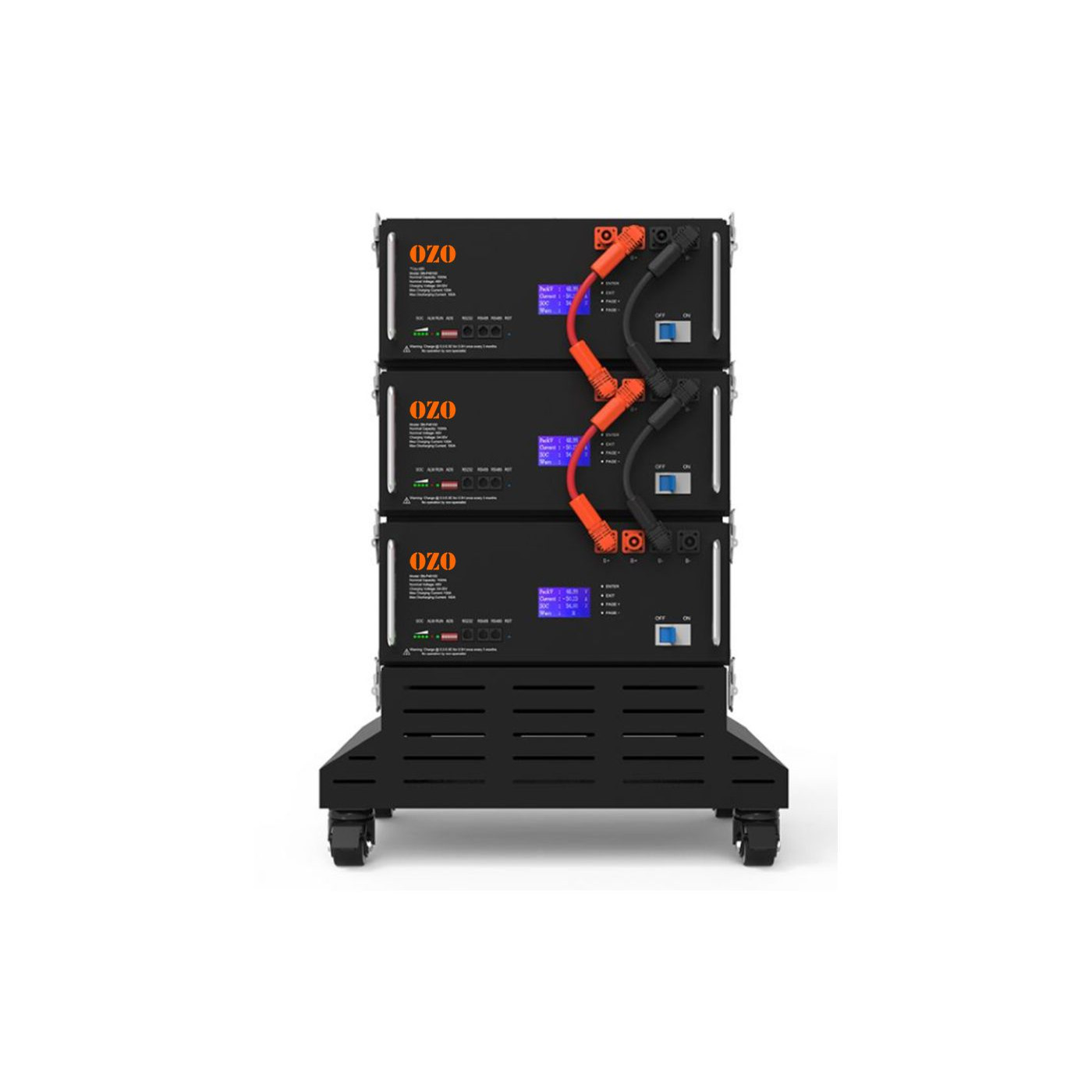 Optimize your home’s energy independence with the OZO 48V – 5kWh solar battery. Compact, rack-mountable and compatible with all 48V hybrid inverters, it efficiently stores electricity produced by your solar panels, wind turbine or the grid.