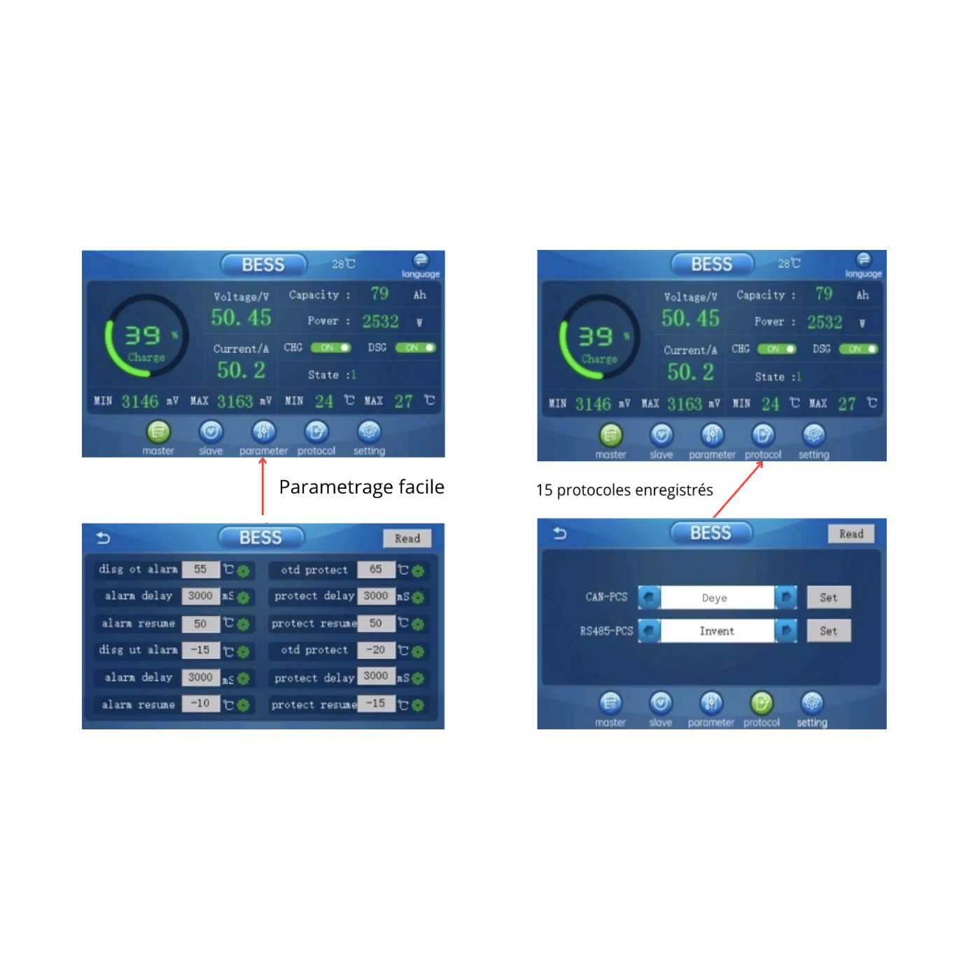 Equipped with an integrated control screen, an intelligent BMS and fast locking connectors, installation is simple, secure and scalable to match your evolving needs.