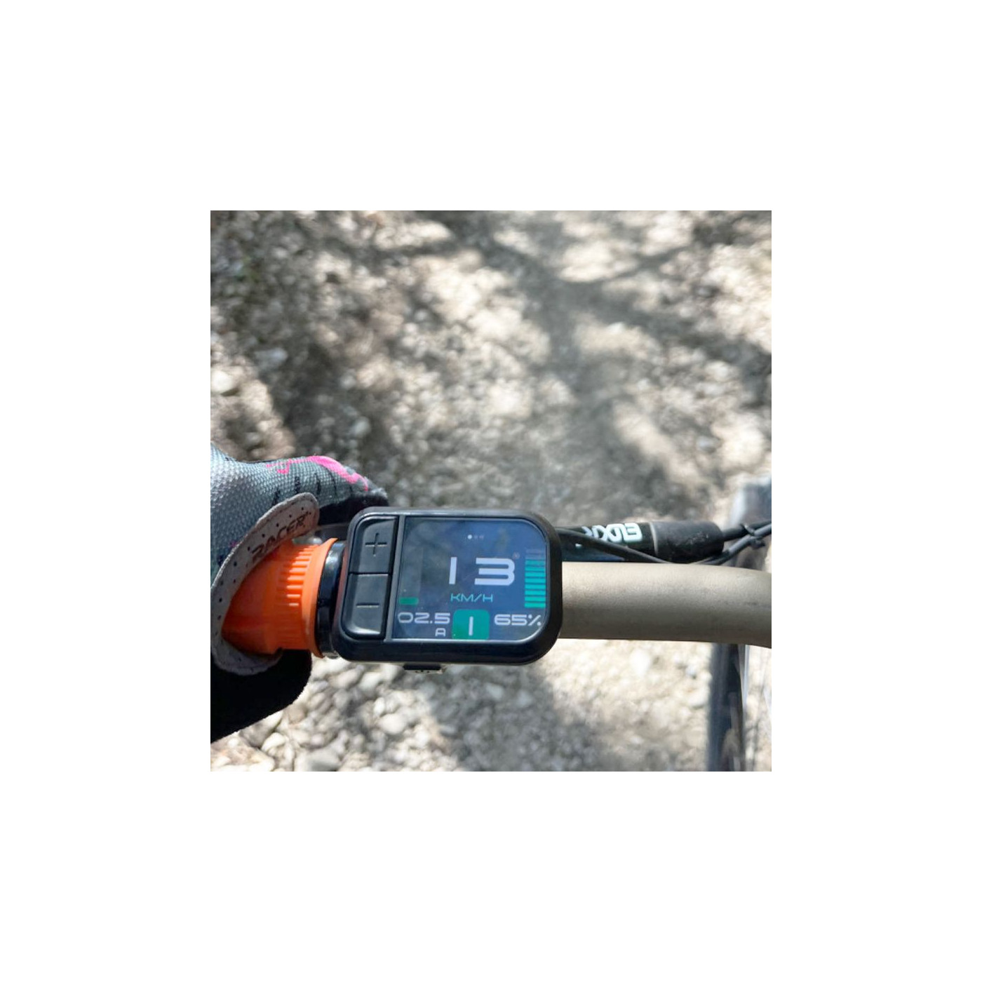 Ideal for MTB, it is robust and less exposed to impacts. Integrated buttons to control the 9 assistance modes.