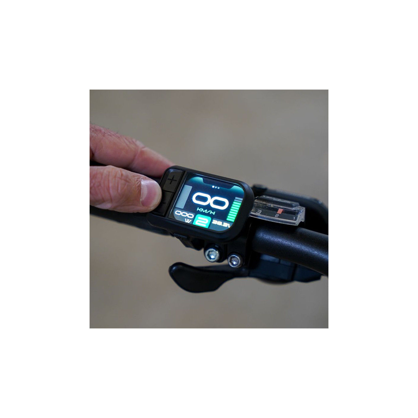 L'écran de contrôle avec un affichage de l'autonomie, la vitesse et la distance.