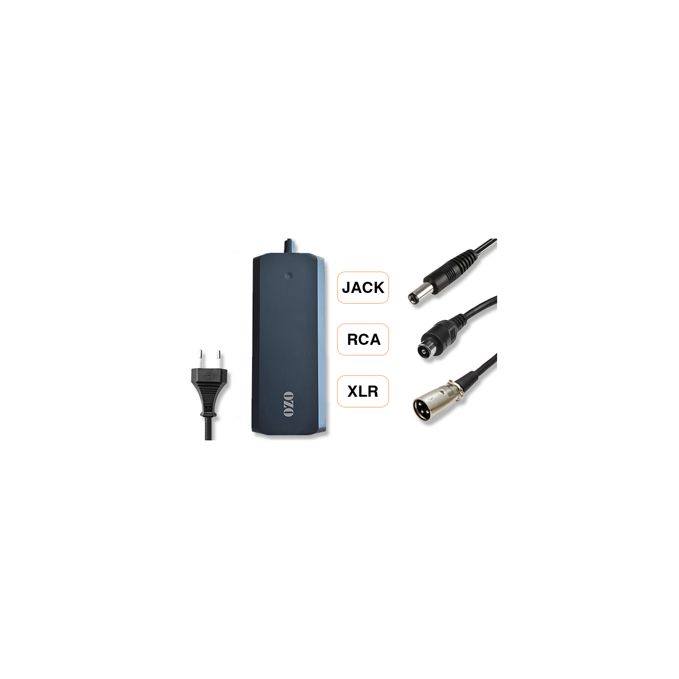 - Compact et pratique, chaque chargeur est livré avec trois types de connecteurs au choix : RCA, XLR ou Jack DC 2.1mm (2,1x5,5x12mm).