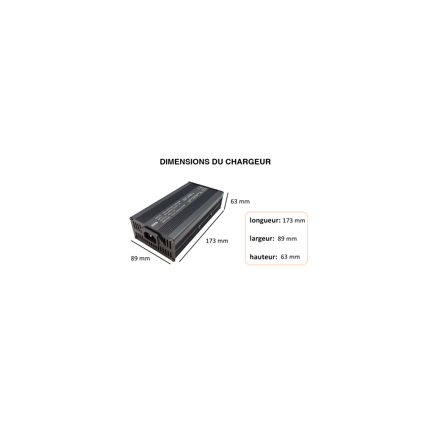 Dimensions du chargeur 48V 10A :
