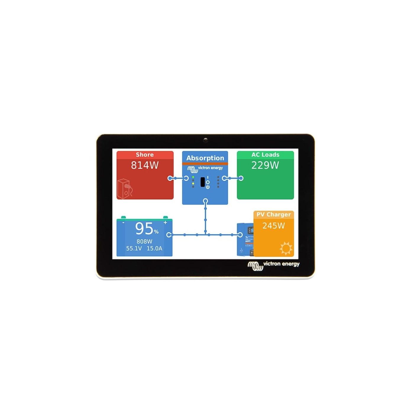 Les accessoires GX Touch 50 et GX Touch 70 sont des écrans pour votre Cerbo GX. Ces écrans tactiles de 5 et 7 pouces vous permettent d'avoir une vue d'ensemble instantanée de votre système solaire et de régler les paramètres en un clin d'œil. Branchés au Cerbo GX simplement avec un câble, lil offre une belle visibilité du suivi de la production et de la consommation de votre installation solaire et du niveau de charge de la batterie si vous êtes en site isolé, ou sur un bateau ou off grid.