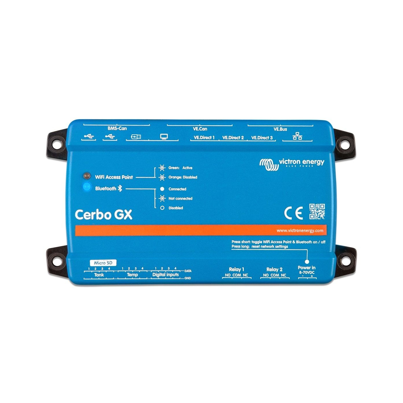 Le Cerbo GX répond à une sans fin d'objectifs, élargissant un contrôle total aux applications les plus diverses. Pour des solutions comprenant des générateurs, telles que des applications Marines , ou de secours et hors réseau , il démarrera/arrêtera votre générateur, ou il retardera l'allumage jusqu'à la fin des périodes « calmes ». Pour des systèmes de stockage d'énergie, il maintient les batteries de secours à 100 %, il intervient durant les coupures d'énergie, et il détourne l'excès d'énergie (solaire) vers l'autoconsommation, ce qui vous fait économiser de l'argent. Pour des camping-cars et des véhicules de secours, il permet aux fonctions vitales des systèmes de se maintenir sans le moindre défaut. Et tout ceci pour ne citer que quelques-unes des fonctions disponibles...