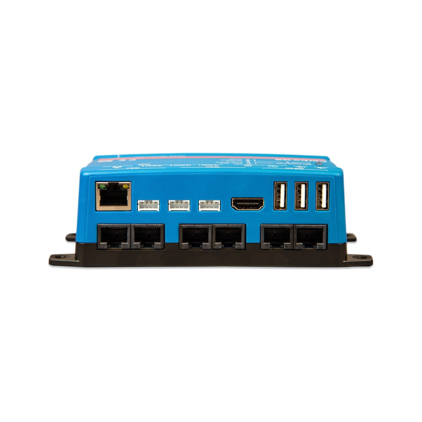 Le Cerbo GX maximise le rendement des éléments de votre système en temps réel et il les maintient en parfait harmonie. Grâce à son processeur Dual Core et à l'ajout d'un port Bus-CAN supplémentaire, vous pouvez à présent gérer des systèmes de plus grande taille ; suivre de près les batteries (lithium) qui sont gérées dans le système, pendant que le second port peut prendre en charge simultanément jusqu'à 25 chargeurs solaires VE.Can connectés. Grâce au nouveau support du protocole NMEA 2000, le GX peut facilement être intégré à n'importe quel réseau des bateaux. Grâce aux quatre réservoirs et aux quatre autres pour la température, ainsi qu'aux 3 ports VE.Direct, aux 3 ports USB, aux 4 entrées numériques et aux 2 relais, vous pouvez étendre à un niveau supérieur le contrôle de votre système. Il n'a jamais été aussi facile de maximiser le rendement de vos systèmes.