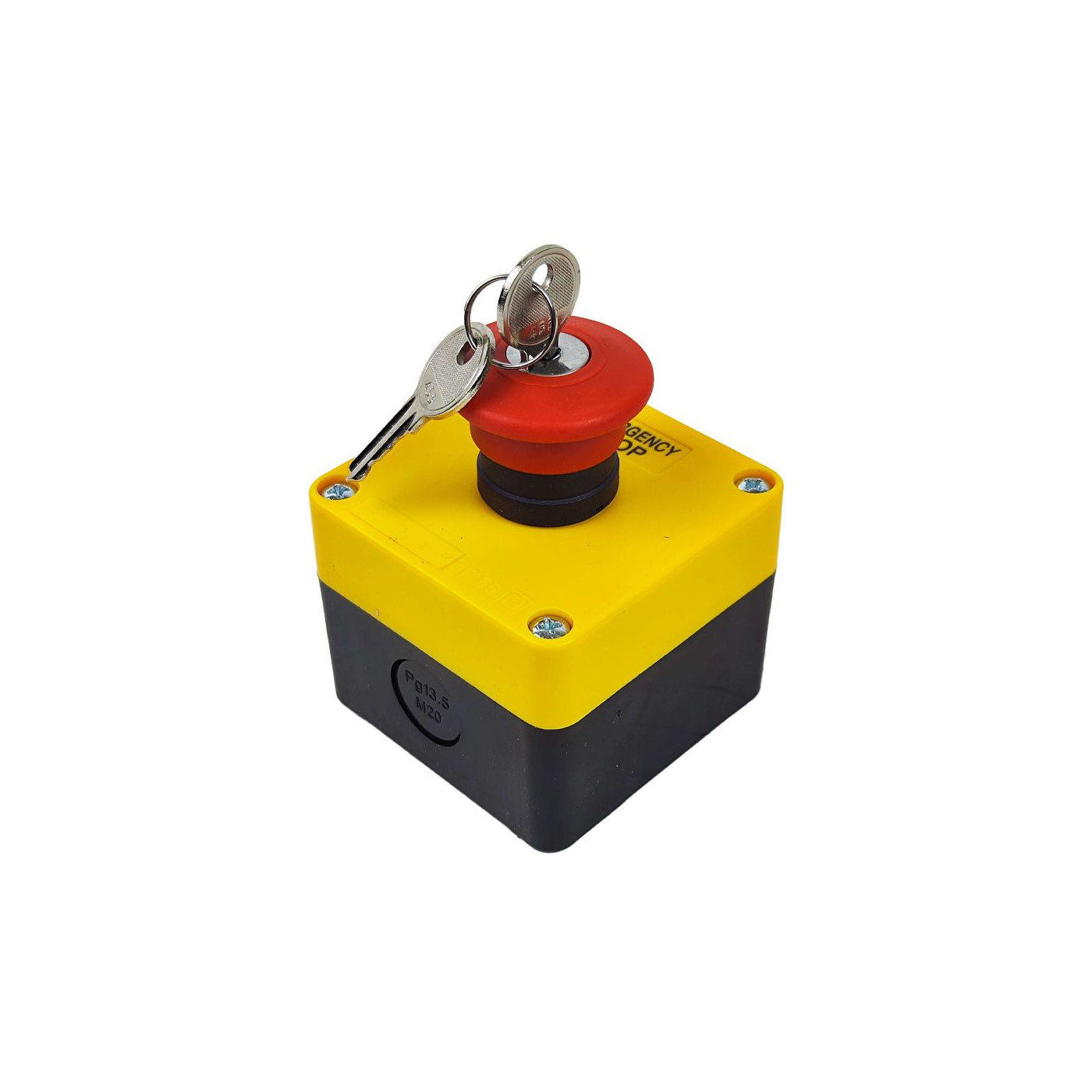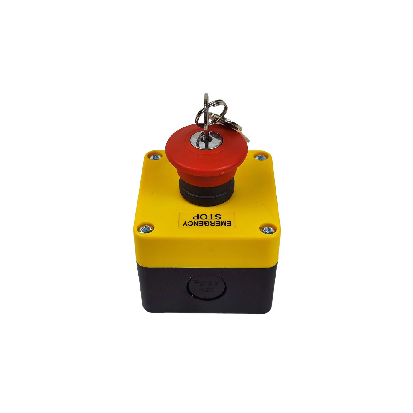 Arrêt d'urgence à clé monté sur boitier jaune