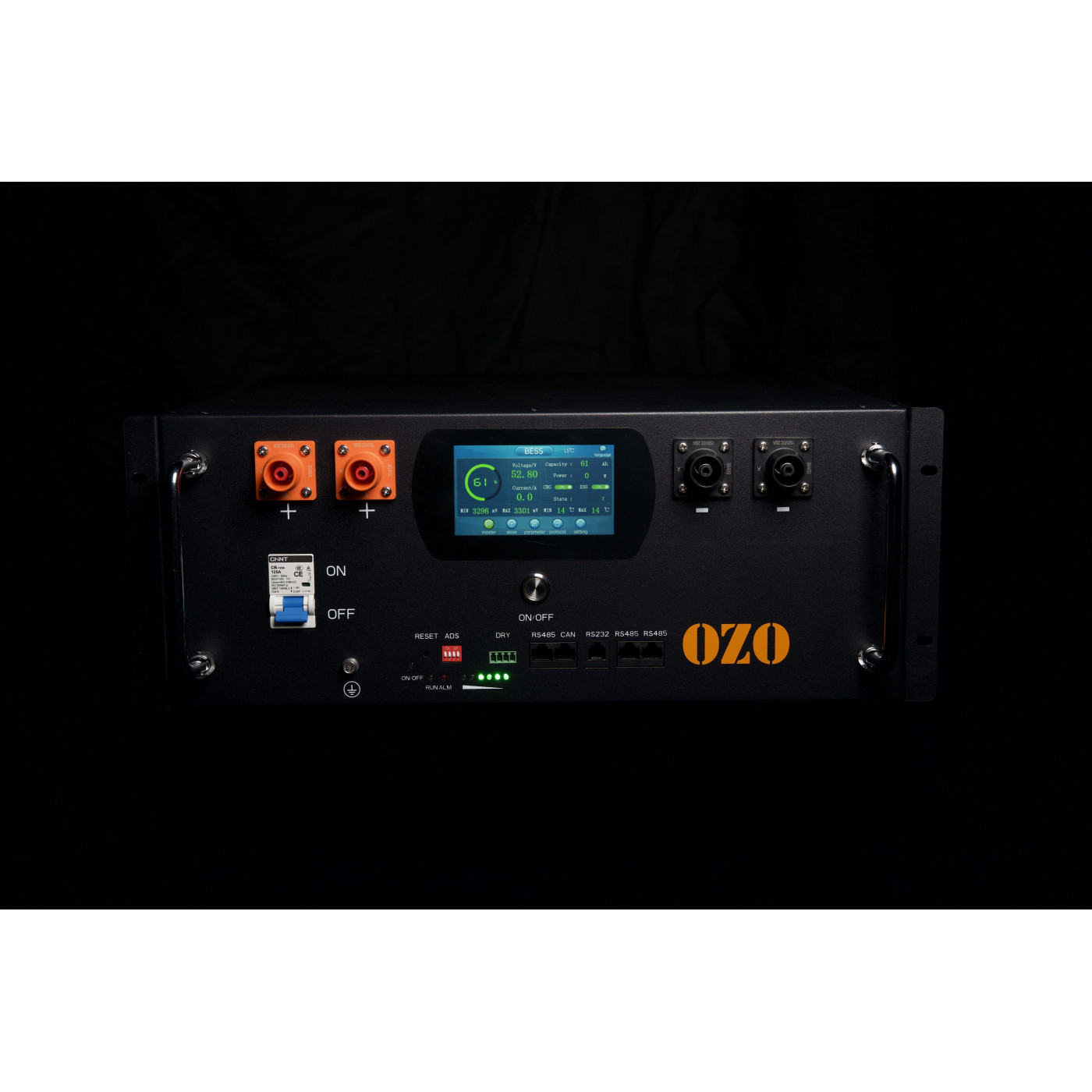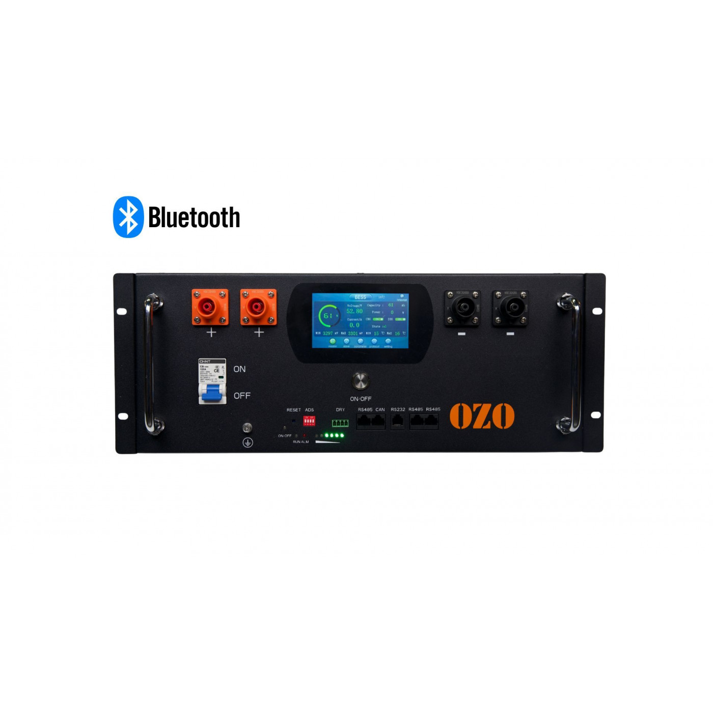 Les batteries OZO disposent de nombreux avantages : Ecran couleur tactile en façade, smart BMS bluetooth pourun monitoring complet avec vôtre smartphone, connecteurs IP67, Compatible CAN bus , UART et RS485, assemblage en 16x cellules LiFePO4 CORNEX grade A+ soudées au laser pour une tenue parfaite en environnement vibratoire.