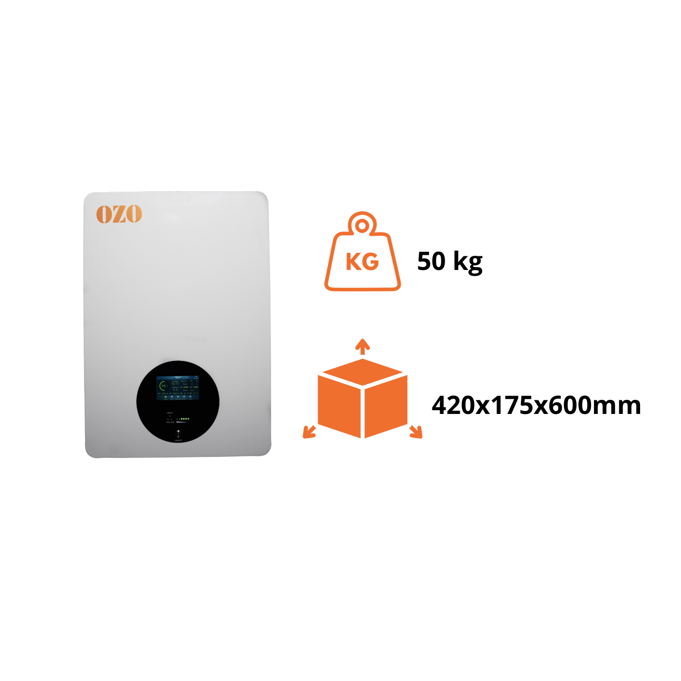 La batterie solaire OZO 5kWh est équipée d’un écran tactile couleur en façade, offrant un accès direct et intuitif aux réglages et aux informations de fonctionnement.