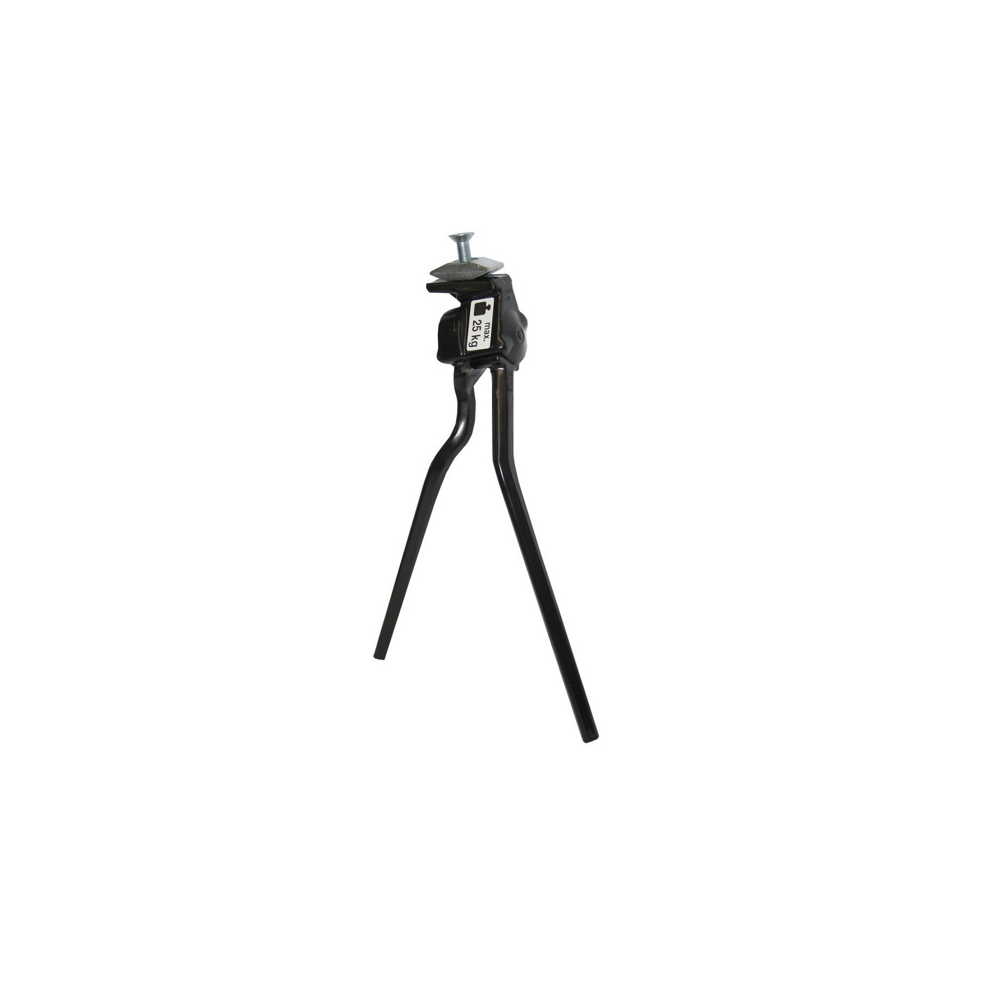 Bequille dépliable qui se positionne latéralement pour se transformer en béquille centrale une fois dépliée.