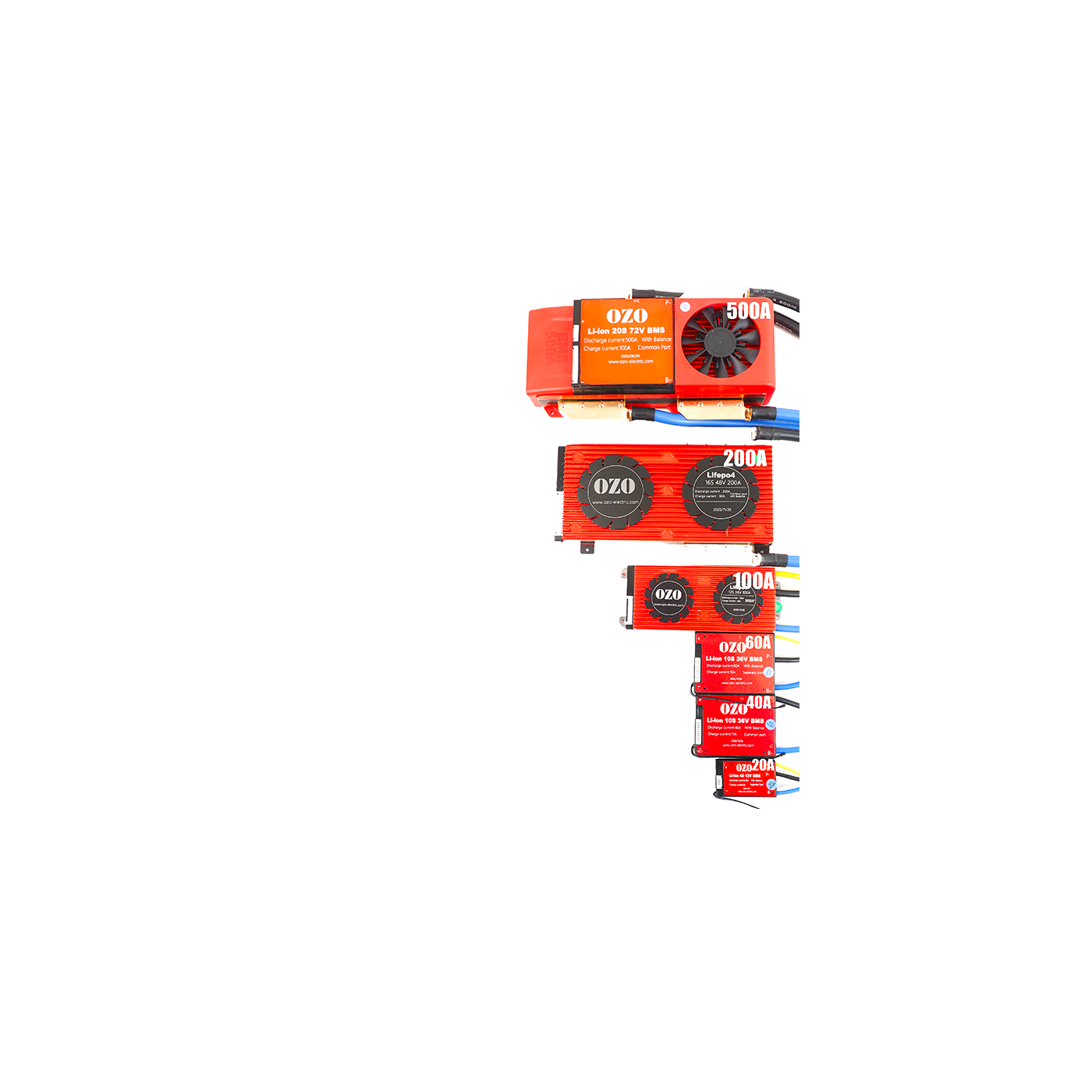 OZO vous propose des BMS et smart BMS de 4S jusqu'à 24S pour des courant de décharge allant de 10A à 500A.