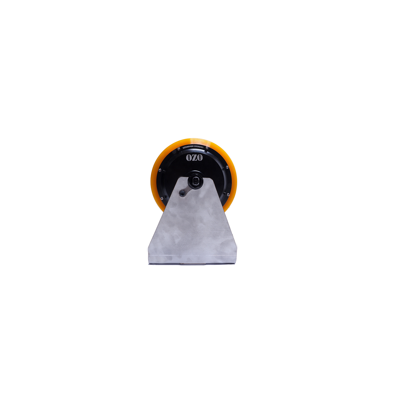 Chape pour roue 200mm avec la possibilité d'ajouter un torque arm et un étrier de freins à disque pour base roulante, transpalette, charriots...