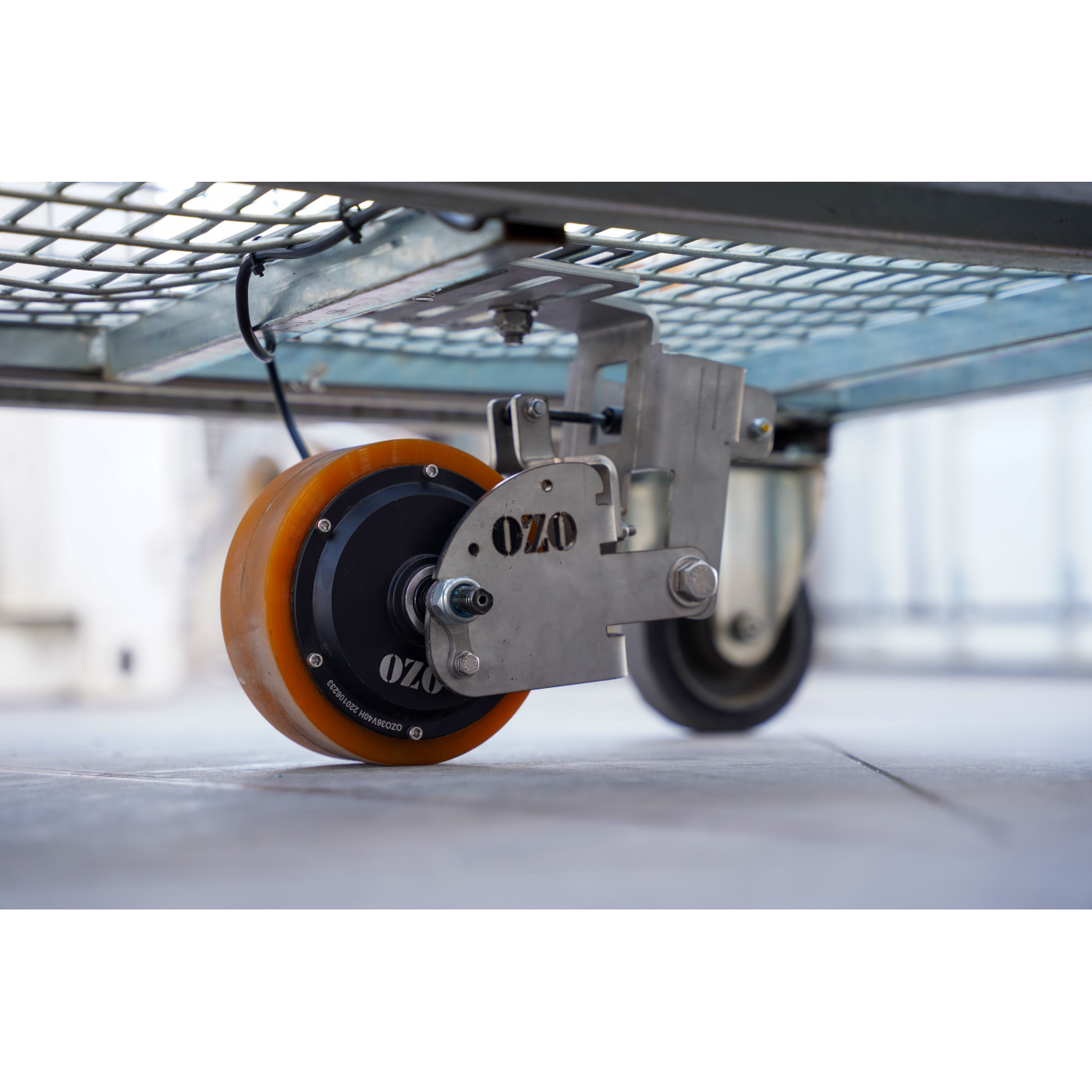 Chape suspendue sur verin gaz pour roue motrice électrique industrielle OZO.