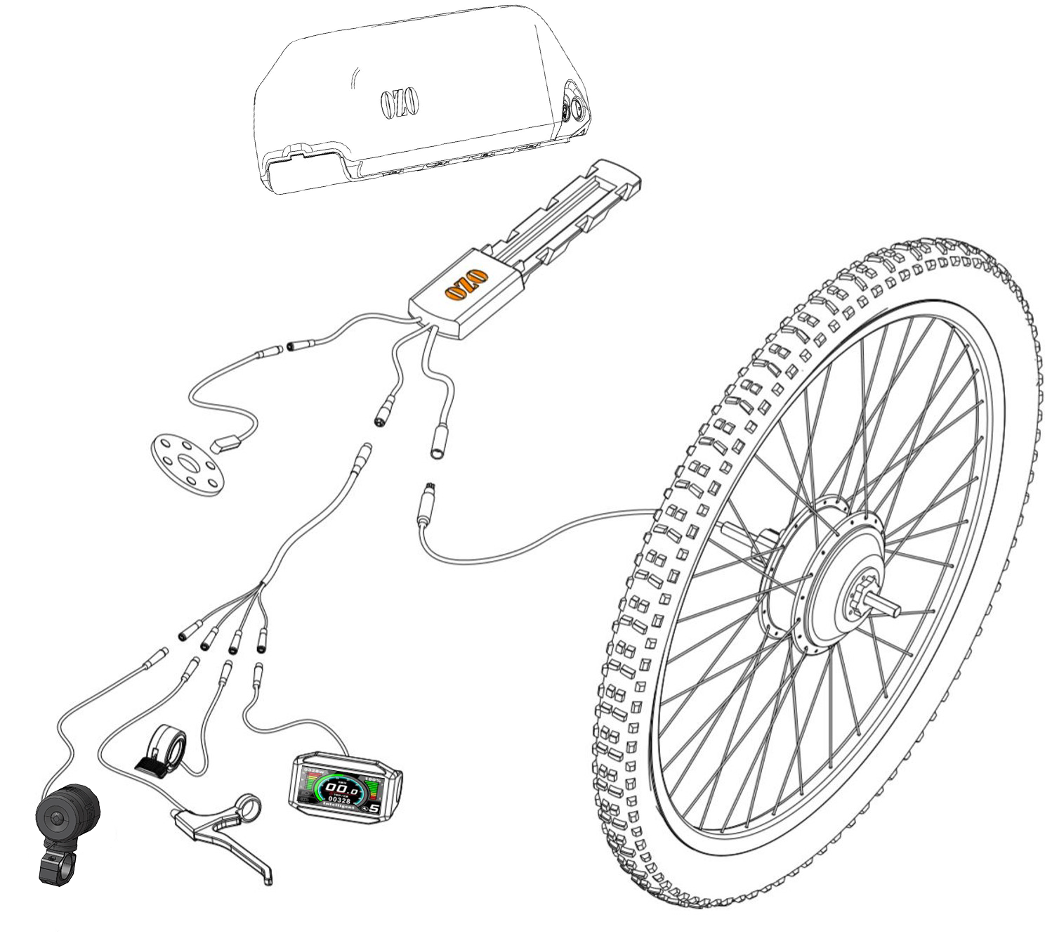 - La roue motrice (moteur moyeu avant ou arrière rayonné sur une jante),
