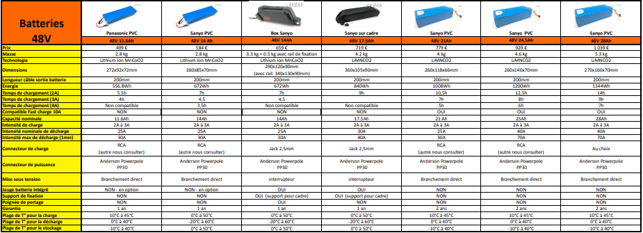 Comparatif des batteries