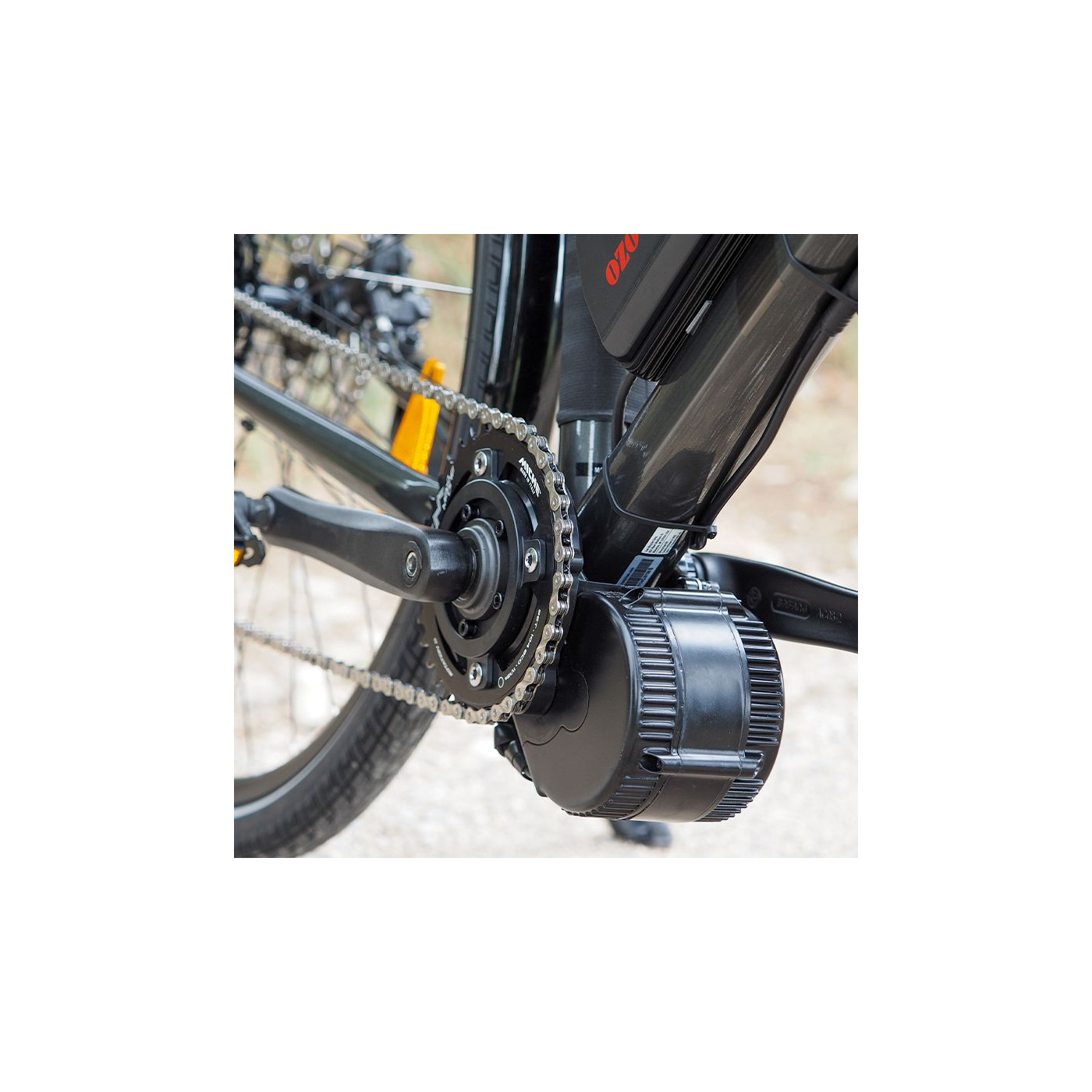 Un moteur pédalier livré avec son plateau de 46 dents.