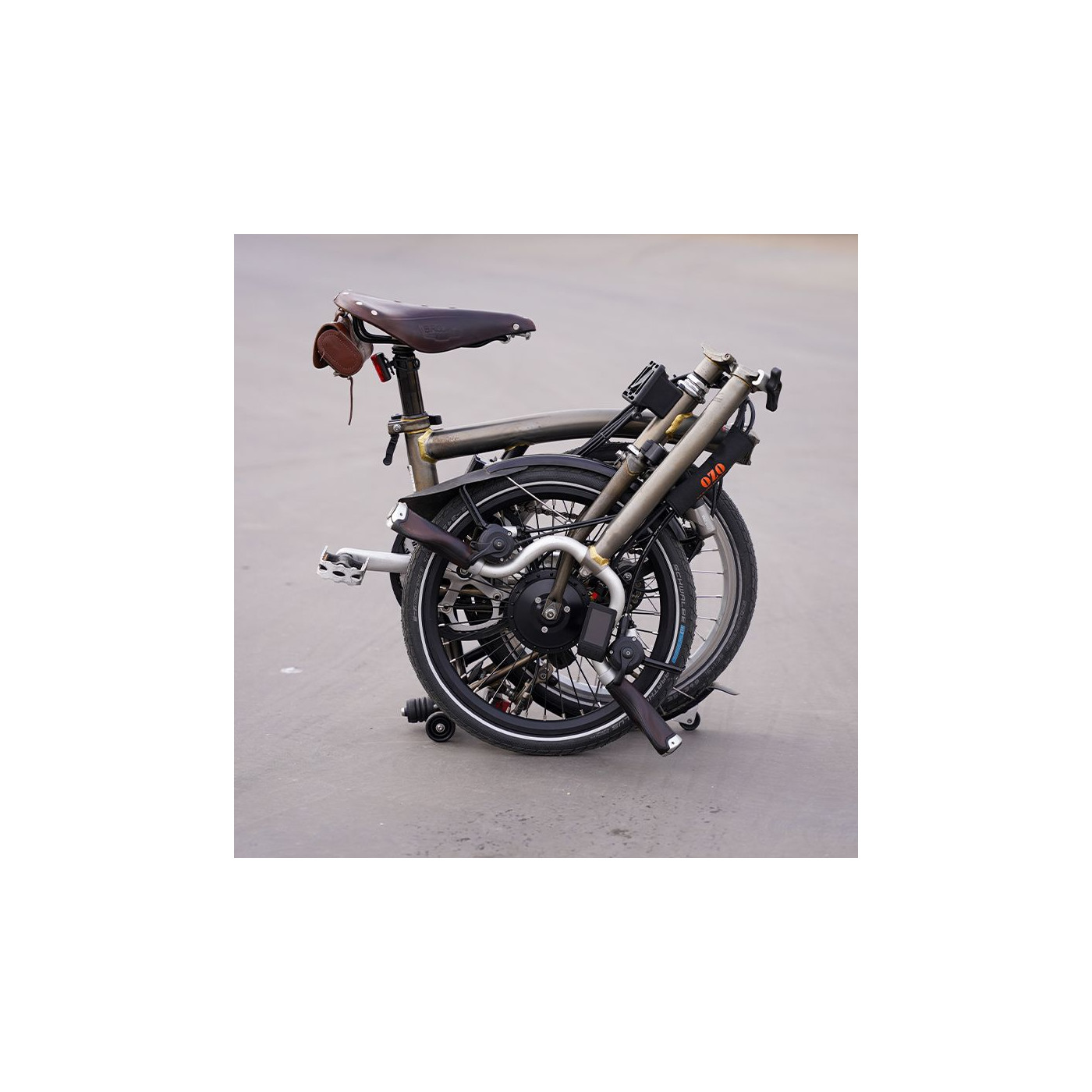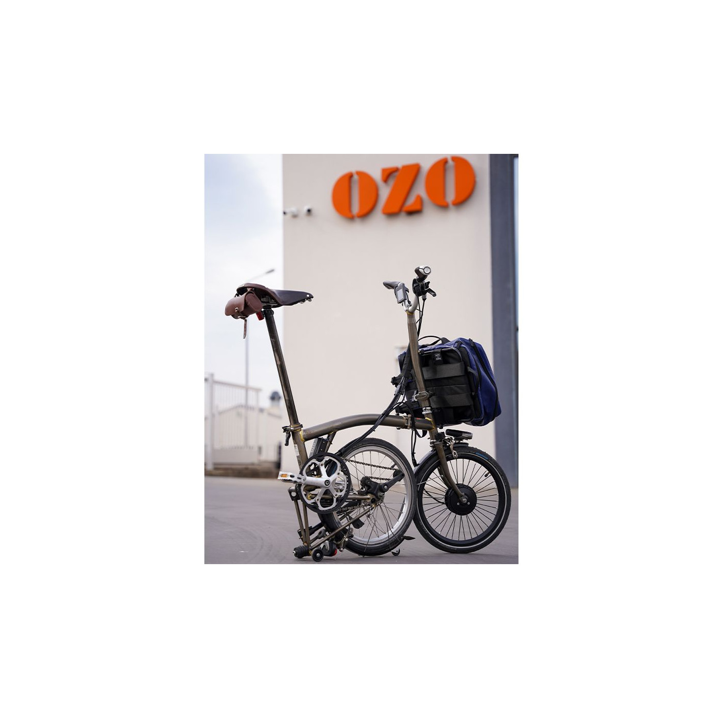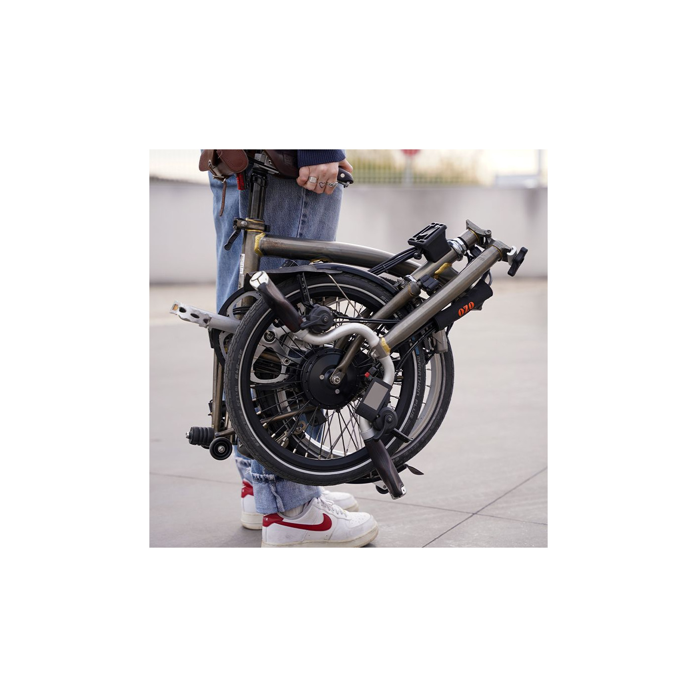 Découvrez notre kit d'assistance électrique OZO, conçu spécifiquement pour les Brompton. Avec son moteur entièrement noir ultraléger de 2,1 kg, il offre une assistance sans compromettre le pliage, la conduite et le design emblématique de votre Brompton.