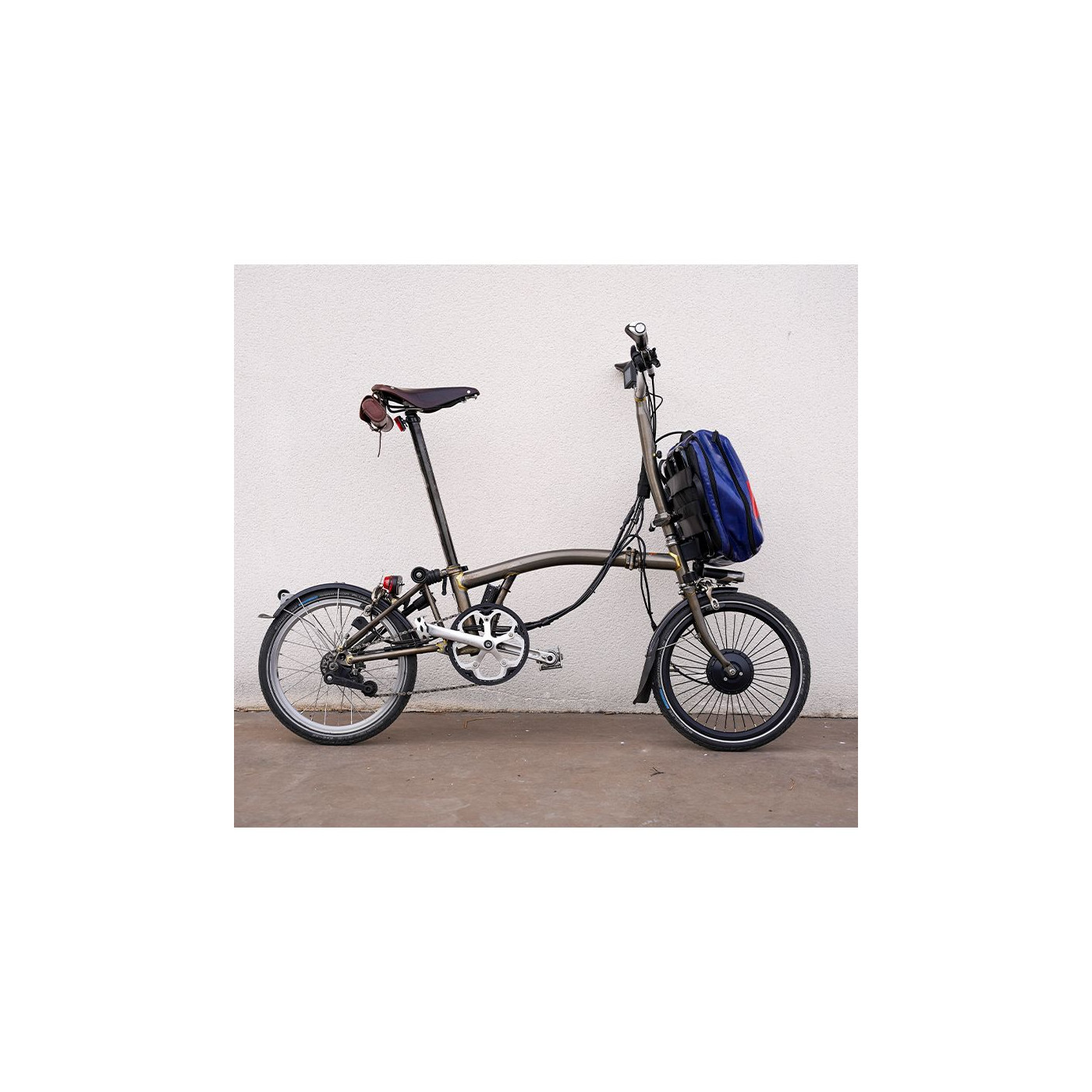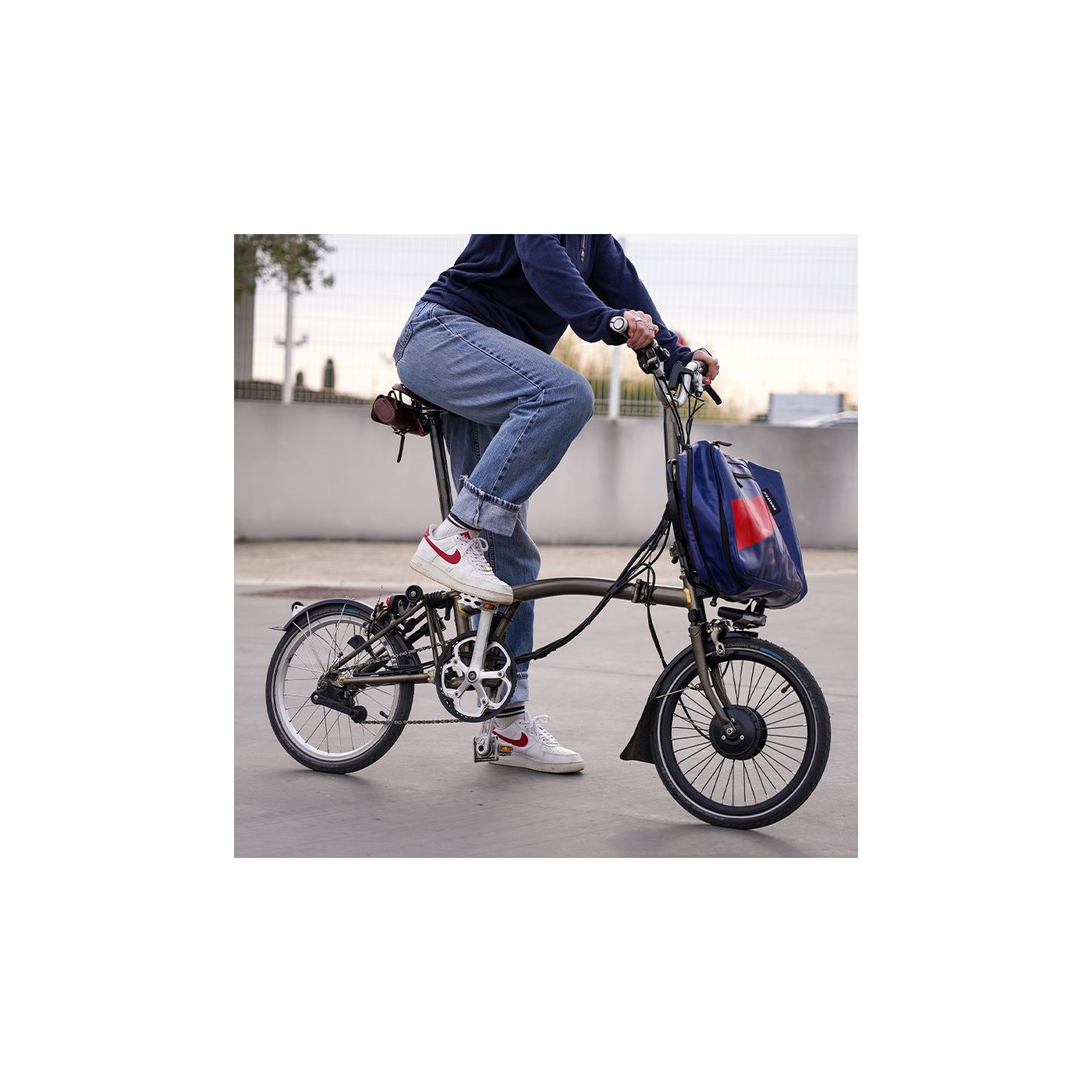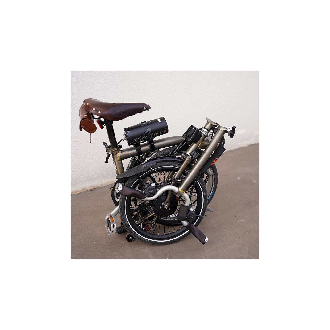 Découvrez notre kit d'assistance électrique OZO, conçu spécifiquement pour les Brompton. Avec son moteur entièrement noir ultraléger de 2,1 kg, il offre une assistance sans compromettre le pliage, la conduite et le design emblématique de votre Brompton.