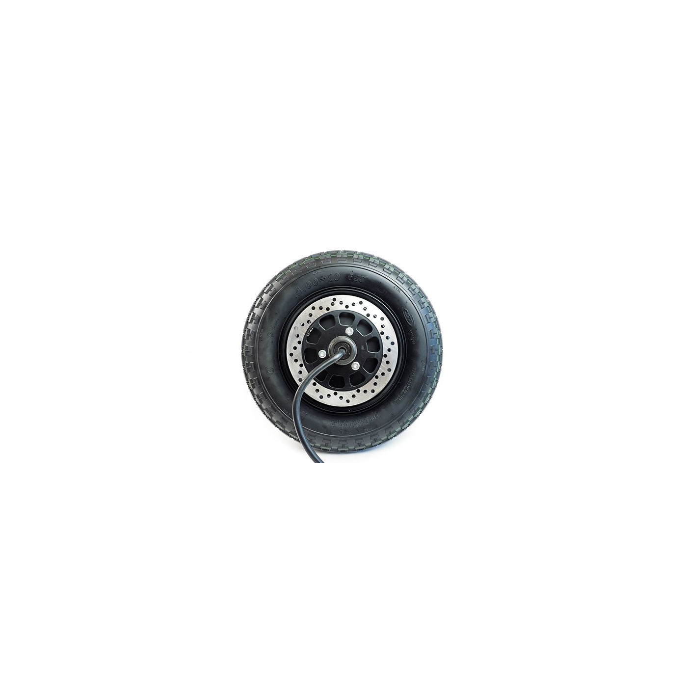 Roue motrice électrique 10'' brushless mono axe 48V 3000W livrée avec pneu mixte au standard 4.00-10 et avec disque de frein.
