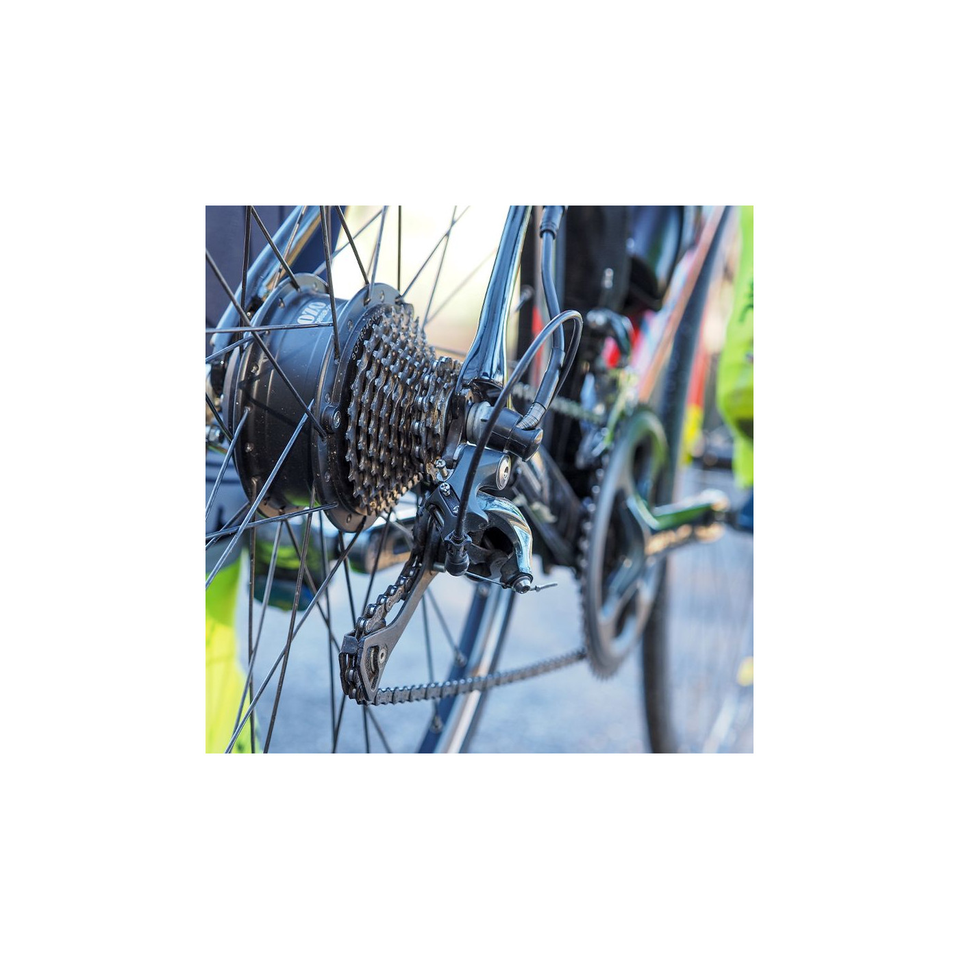 Le moteur Bobber est équipé d’un corps de cassette compatible avec toutes les cassettes Shimano et Sram 7, 8, 9 et 10 vitesses. Vous pourrez aussi y installer du 11 et 12 vitesses mais uniquement s'il s'agit d'une cassette type VTT avec un grand pignon supérieur à 32 dents.