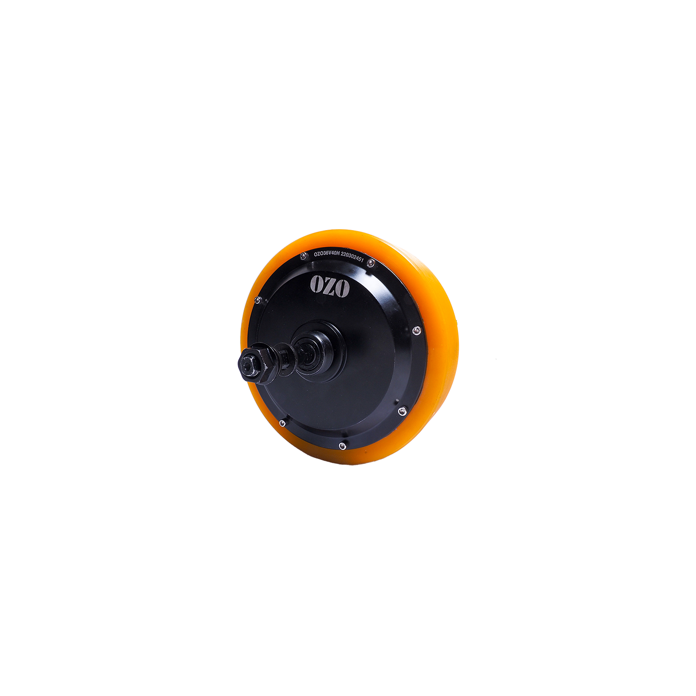 Nous proposons un moteur roue électrique brushless de 220 mm de diamètre disposant d'un bandage en polyurethane.