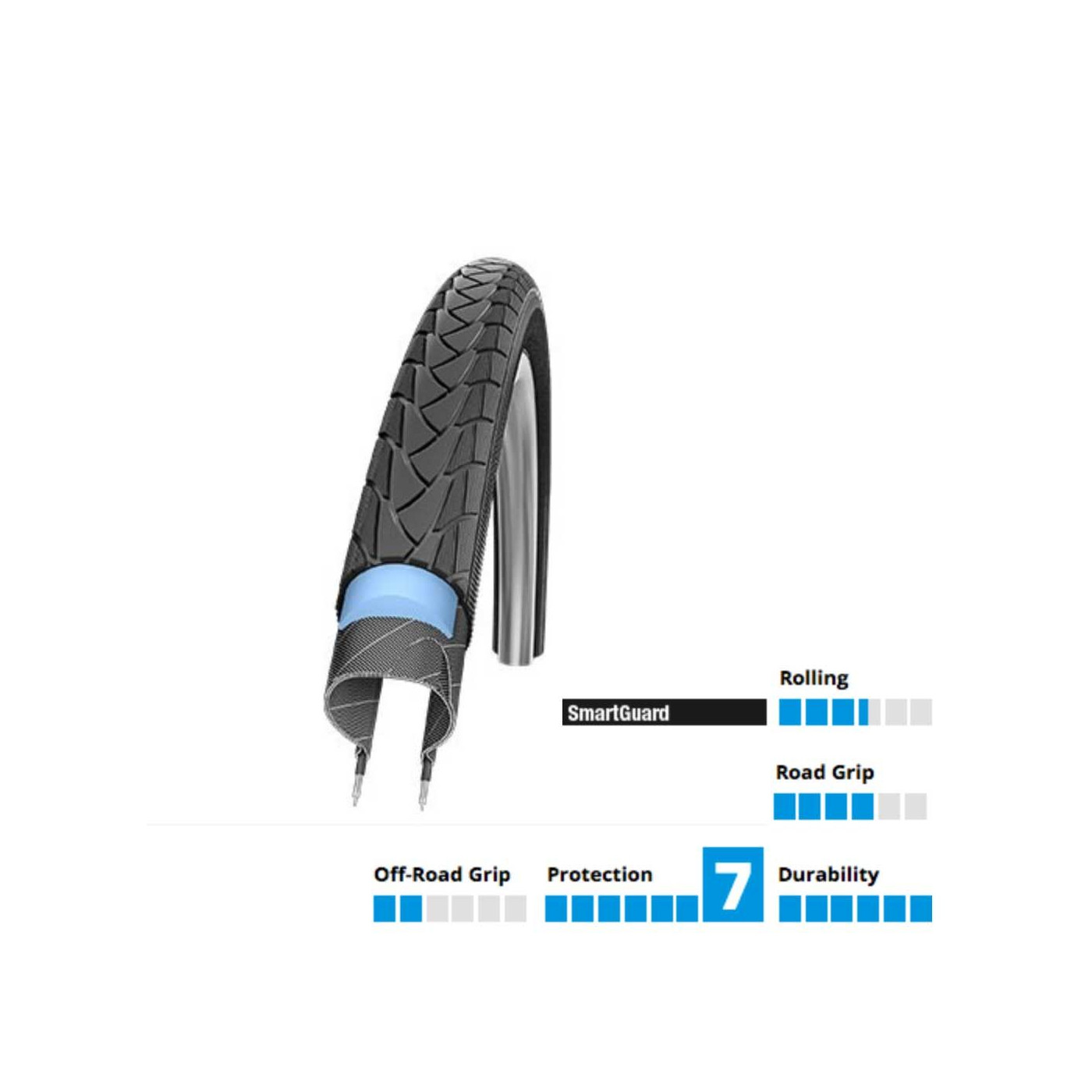Le pneu Marathon Plus est tout simplement le meilleur pneu anticrevaison du marché pour les vélos électriques ou pour un usage intensif. Il se compose d'une sous-couche de 5 mm de caoutchouc particulièrement souple et partiellement élaborée à partir de matériau recyclé. SmartGuard vous garantit une totale invulnérabilité contre les crevaisons par corps étrangers.