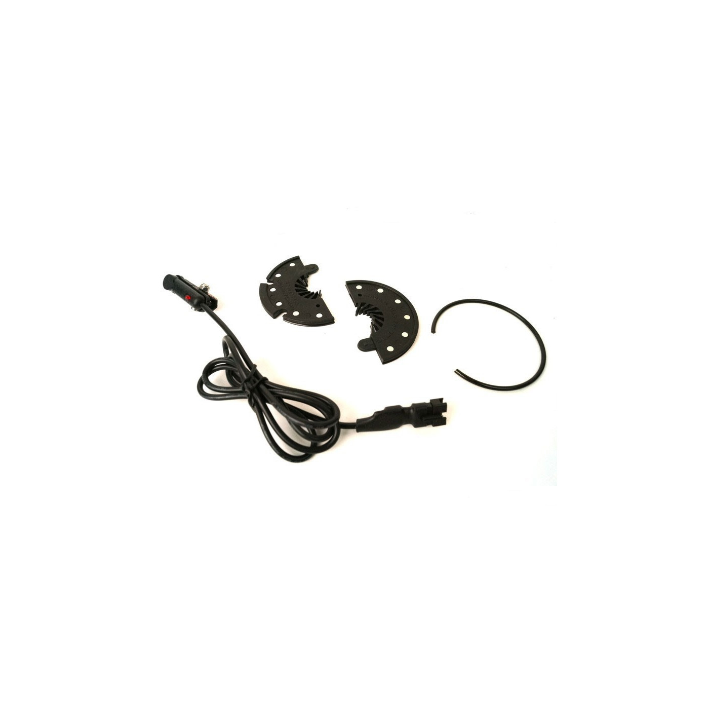 Le capteur est branché au contrôleur. Lorsqu’un aimant passe devant le capteur, il envoie un signal au contrôleur qui lui demande de lancer le moteur. Plus la cadence de pédalage va être élevée, plus le contrôleur va envoyer de puissance ou de vitesse au moteur. Il existe des rondelles aimantées à 6 et à 12 aimants. Le nombre d’aimants aura un impact sur le temps de réponse du moteur. Plus il y a d’aimants, meilleure sera la réactivité du moteur pour se lancer ou s’arrêter. |