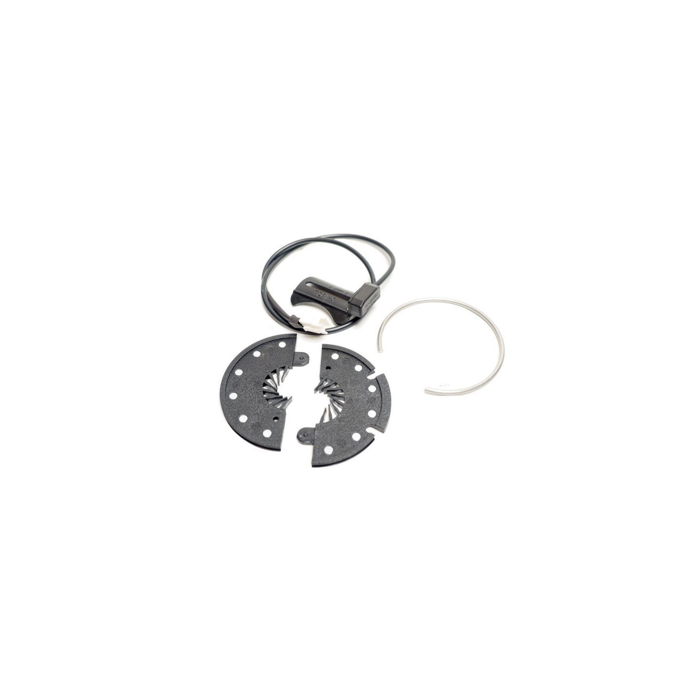 1. CAPTEUR PÉDALIER À RONDELLE AIMANTÉELe principe est simple, on positionne la rondelle aimantée autour de l’axe du pédalier (blocage sur l’axe ou fixation sur le plateau) et le capteur en face,de manière à ce que les aimants de la rondelle passent juste devant le capteur lorsqu’on pédale (schéma ci-dessous). Le capteur est branché au contrôleur. Lorsqu’un aimant passe devant le capteur, il envoie un signal au contrôleur qui lui demande de lancer le moteur. Plus la cadence de pédalage va être élevée, plus le contrôleur va envoyer de puissance ou de vitesse au moteur. Il existe des rondelles aimantées à 6 et à 12 aimants. Le nombre d’aimants aura un impact sur le temps de réponse du moteur. Plus il y a d’aimants, meilleure sera la réactivité du moteur pour se lancer ou s’arrêter. 2. CAPTEUR PÉDALIER INTÉGRÉLe capteur intégré est plus simple à installer sur le vélo, à condition que le vélo ait l’architecture permettant de l’installer. Il s’installe sur l’axe du pédalier. Son principe est semblable à celui d’un roulement. Sa bague intérieure, montée serrée sur l’axe du pédalier va tourner selon la cadence de l’utilisateur et sa bague extérieure, fixe par rapport au cadre et reliée au contrôleur, va envoyer les informations au moteur. Le fonctionnement est le même que pour la rondelle aimantée. Plus la cadence de pédalage sera élevée, plus le contrôleur enverra de puissance ou de vitesse au moteur. |