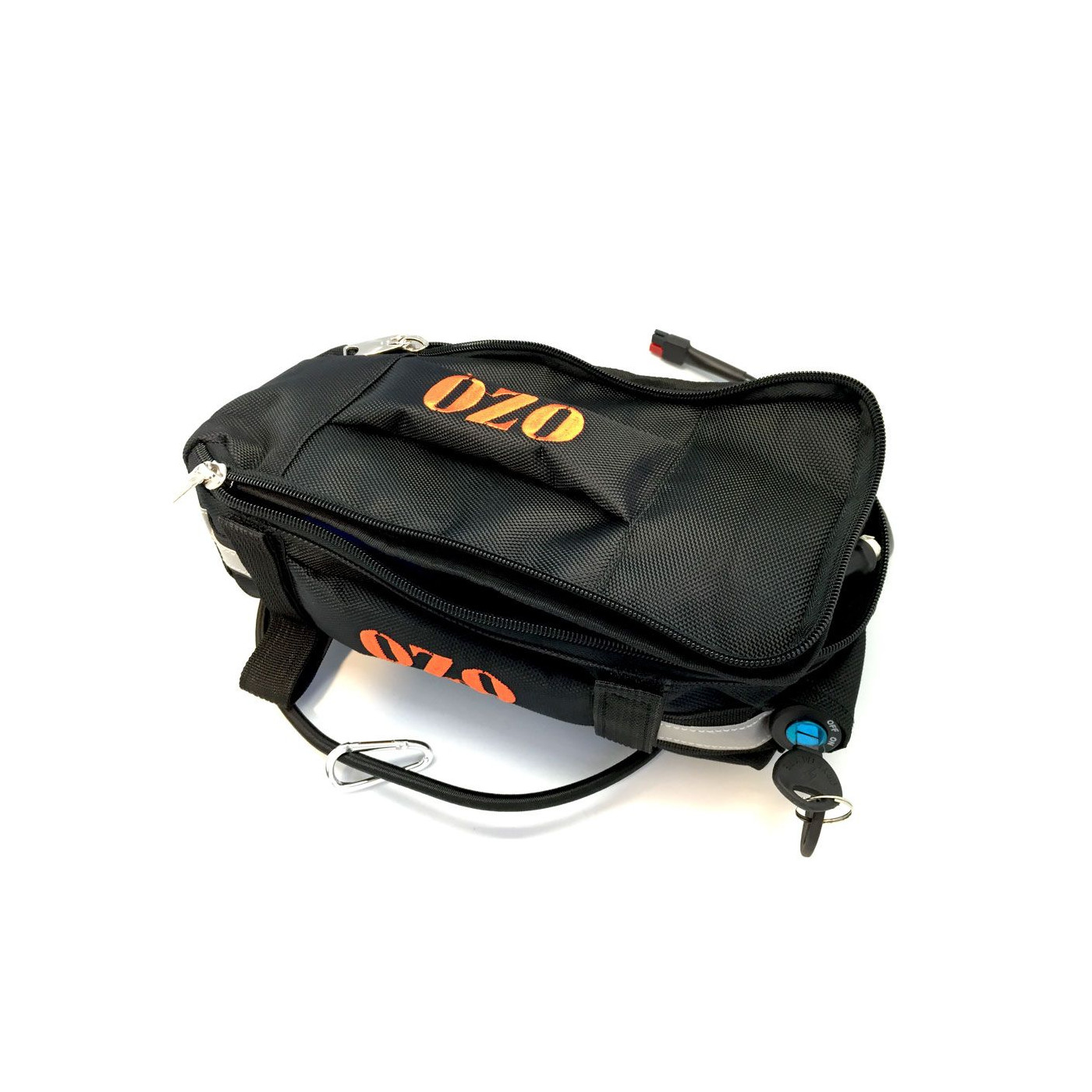 Cette sacoche est idéale pour l'installation d'une batterie PVC sur votre porte-bagages. Vous pouvez choisir un neiman supportant 30A et disposant de connecteurs Anderson PP30 en accessoire.