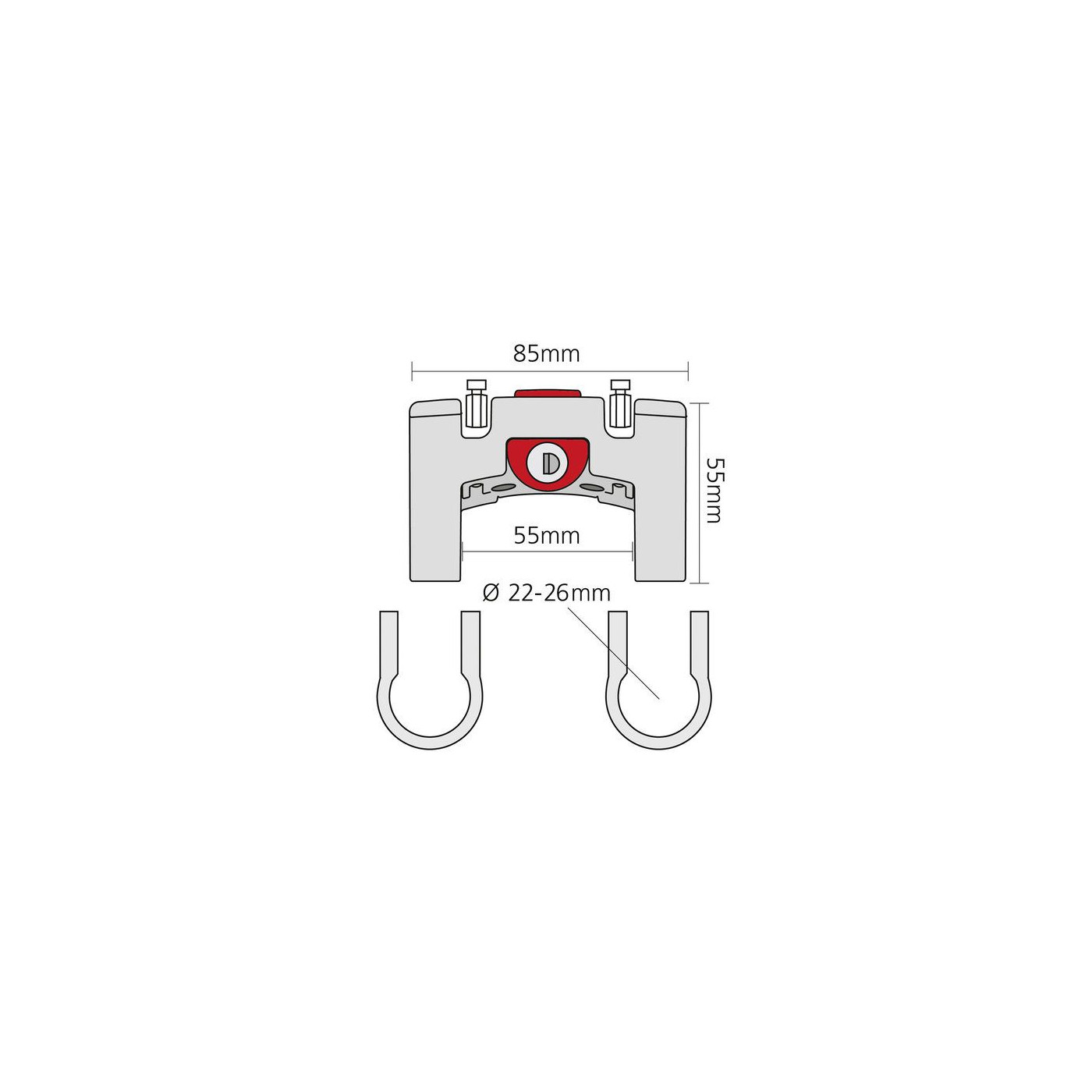 Si vous souhaitez laisser votre panier sans risque sur votre vélo, choisissez la fixation de cintre à serrure. La fixation pour cintre transforme rapidement votre VTT en un vélo de ville avec panier pour les courses. Avec crochets pour cintre standard Ø 22-26.